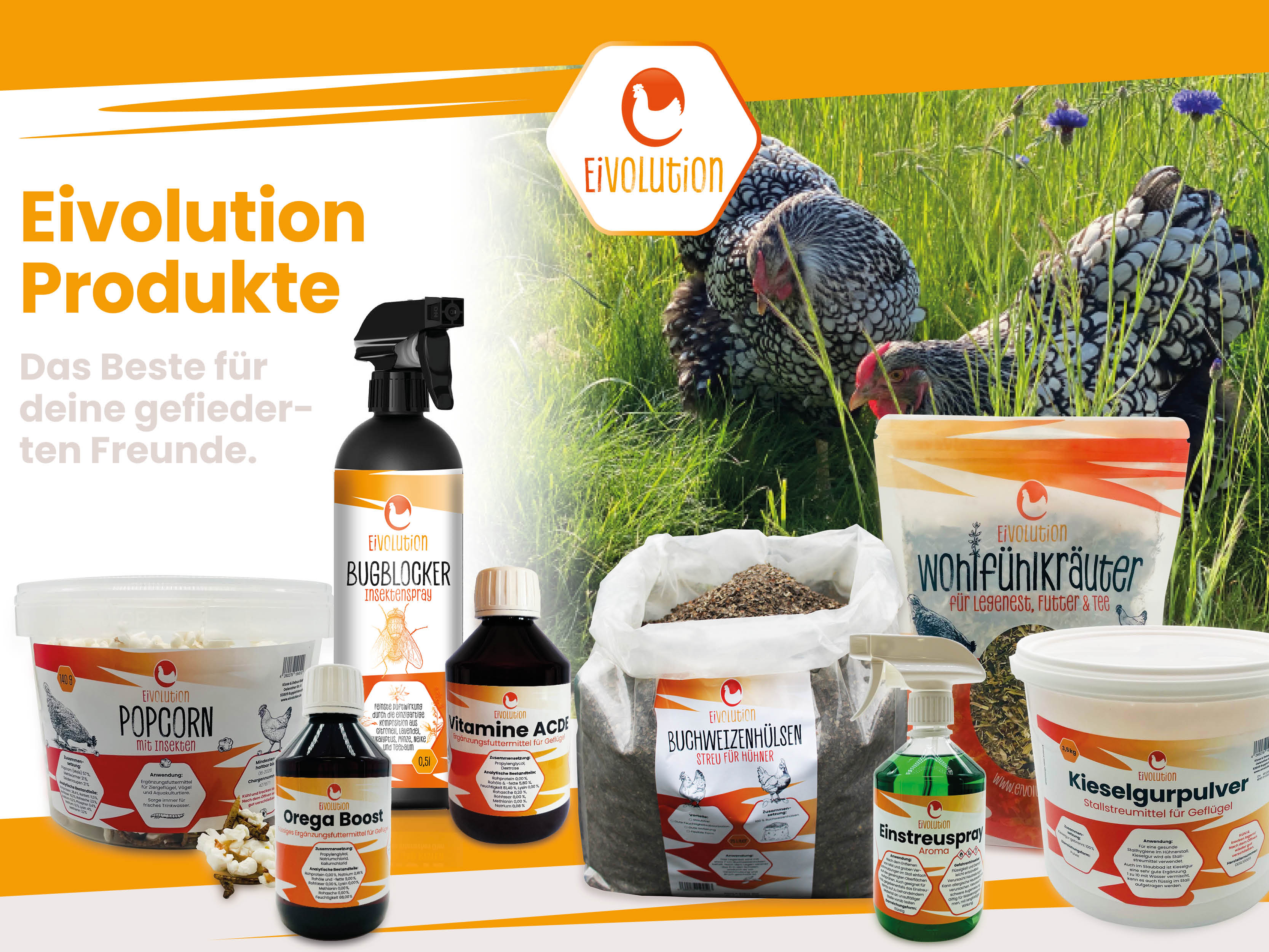 Eivolution ist die Hausmarke von eierschachteln.de und steht für durchdachte, praxiserprobte Produkte mit ökologischem Bewusstsein. Unter dem Motto "Alles aus einer Hand" bieten wir hochwertiges Bio-Geflügelfutter, Bio-Einstreu und praktisches Stallzubehör für eine nachhaltige und artgerechte Geflügelhaltung. Eivolution richtet sich an bewusste Hühnerhalter und Selbstversorger, die höchste Qualität für ihre Tiere suchen. Mit unseren Produkten unterstützt du eine verantwortungsvolle Geflügelhaltung und setzt auf nachhaltige Lösungen.